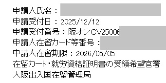 申請場所:大阪出入国在留管理局